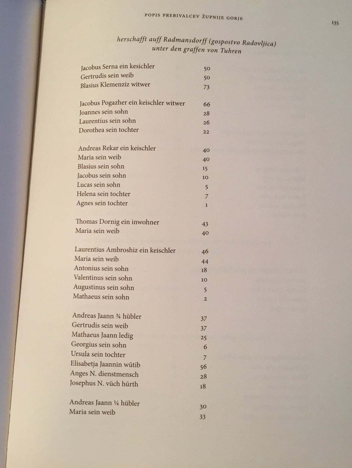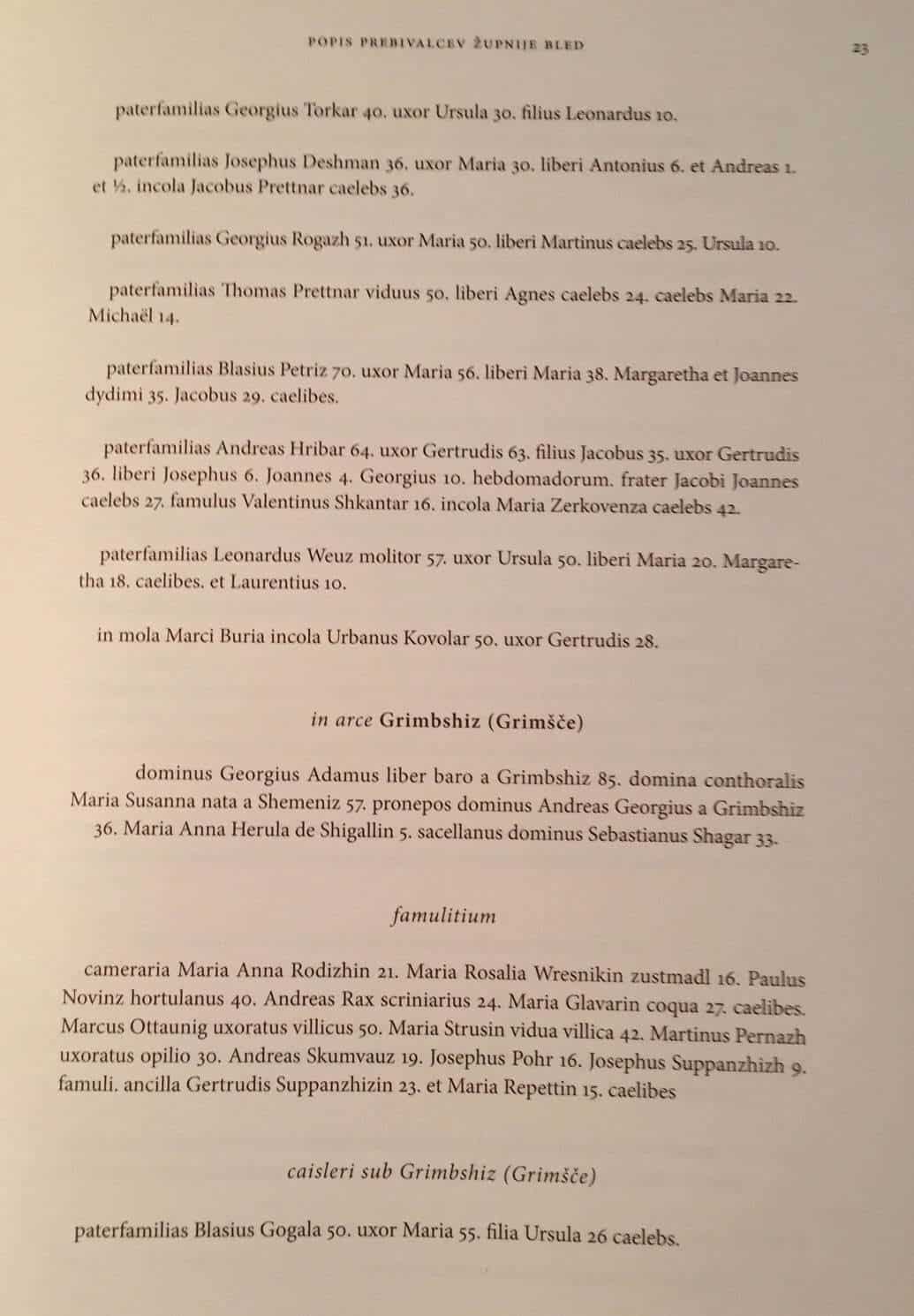 Dragocenost, ki kar kliče po posnemanju, je debela in lično oblikovana knjiga z naslovom Gorenjske družine v 18. stoletju. Gre za prepis popisov prebivalstva 24 župnij iz leta 1754.